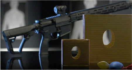 The system is easy to set up and takes no special equipment. The reactive target boxes come in two different sizes, 4" x 4" for the head and 8"x 8" for torso areas.